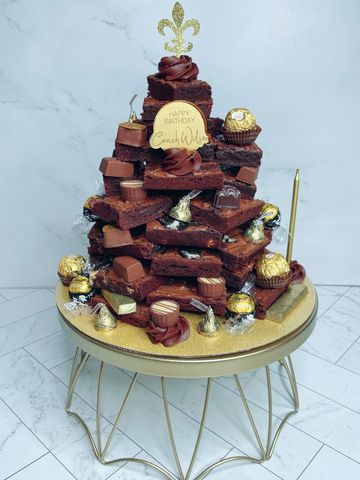 Brownie Tower is the ultimate alternative celebration cake for your special occasion or event. You can choose up to 3 brownie flavors and share your candy/topping preference. A Topper can also be added to your tower.